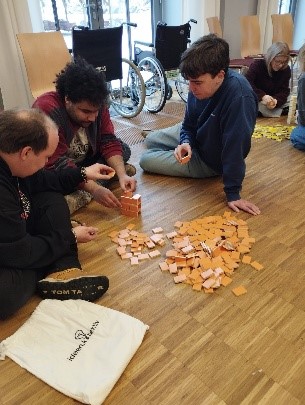 VSP Dresden | Offener Treff Mosaik | Barrierecheck vor Ort und der Digitalen Produkte Im Offenen Treff für Kinder und Familien in Dresden Leuben, führten wir mit den Mitarbeiter:innen einen Barrierecheck in den Räumen des Treffpunktes durch. Der Treff ist für viele Kinder und Familien aus der Umgebung ein Anker. Etablierte und neue Angebote sind im Mosaik zu finden. Nach einer kurzen Kennlernphase tauschten wir uns zuerst über die Homepage aus. Wir gaben Anregungen zu Formulierungen in verständlicher Sprache, zu Farbabstufungen, Aufteilung und Aufbau der Seite im Allgemeinen. Mit wertschätzendem und offenem Blick gingen wir durch die Räume und tauschten uns über die Gegebenheiten aus.